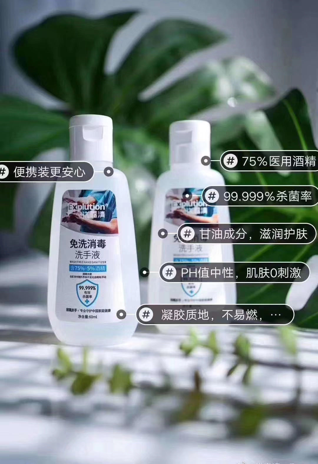 75%医用酒精为主要成分,添加护肤甘油,消毒凝胶,方便携带,杀菌率99.999%