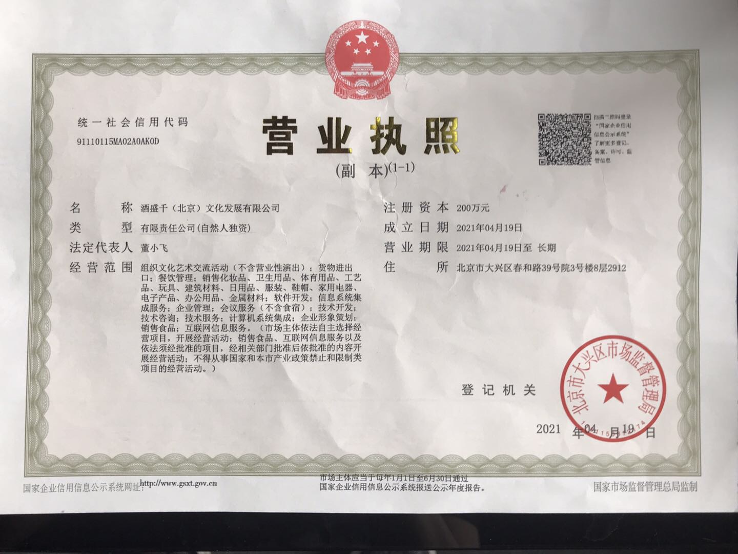> 酒盛千北京文化发展有限公司
