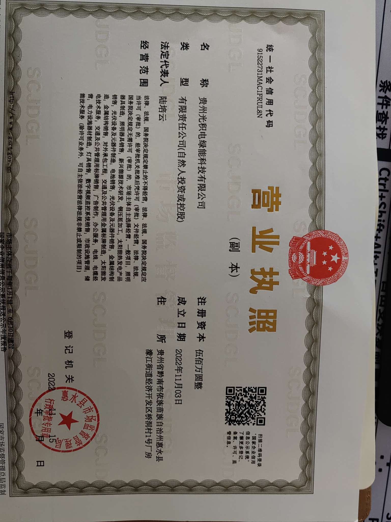 > 贵州光积电绿能科技有限公司